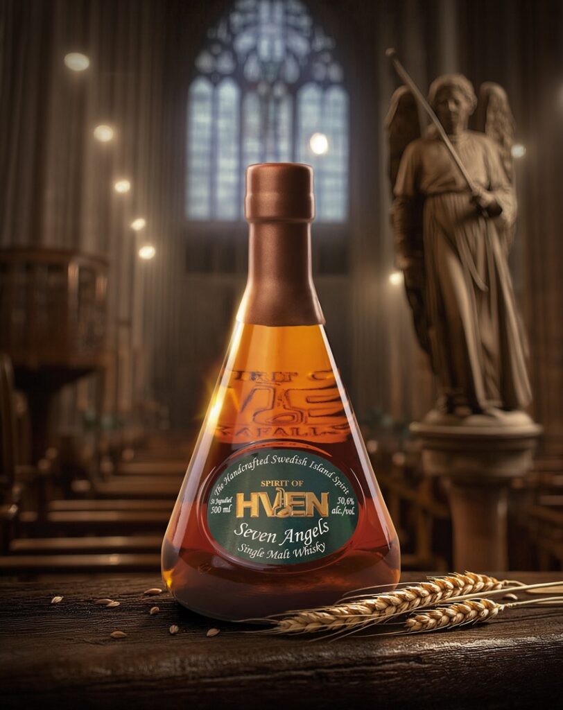 Seven Angels, is a series of single malt whiskies released one per year, in limited editions from Spirit of Hven. Every bottling is unique and with a distinctive scent and taste. This is number six, St Jegudiel, a fully matured single malt whisky with a bold, yet velvet smooth scent of spring flowers, winy aromas and spicy notes of coffee, chocolate and leather. A cherished spring evening with barbeque, freshly baked pie and lush greenery.